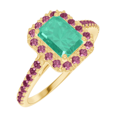 « L'ATELIER » NR. 170985Ring Geelgoud 18 karaat - Smaragd Rechthoekig 0.5 Karaat - Halo Robijn - Setting Robijn 4.9 (46)