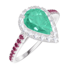 « L'ATELIER » NR. 171067Ring Witgoud 18 karaat - Smaragd Peer 0.5 Karaat - Halo Diamant - Setting Robijn 5