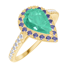« L'ATELIER » NR. 171094Ring Geelgoud 9 karaat - Smaragd Peer 0.5 Karaat - Halo Blauwe saffier - Setting Diamant 5