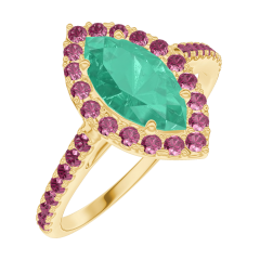 Ring Geelgoud 18 karaat - Smaragd Markies 0.5 Karaat - Halo Robijn - Setting Robijn