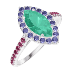 « L'ATELIER » NR. 171148Ring Witgoud 9 karaat - Smaragd Markies 0.5 Karaat - Halo Blauwe saffier - Setting Robijn
