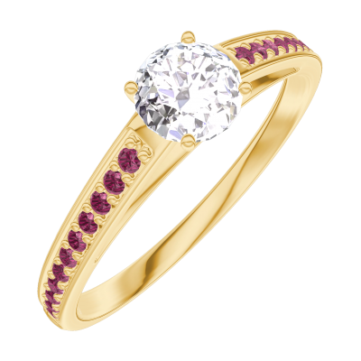 « L'ATELIER » Nº180010Ring Geelgoud 9 karaat - Laboratorium diamant rond 0.3 Karaat - Setting Robijn 4.8