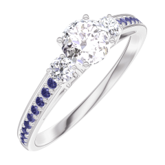 Ring Witgoud 18 karaat - Laboratorium diamant rond 0.3 Karaat - Aanleunende edelstenen Laboratorium diamant - Setting Blauwe saffier