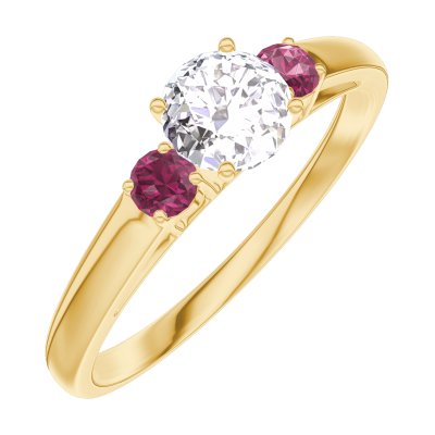 « L'ATELIER » Nº180042Ring Geelgoud 9 karaat - Laboratorium diamant rond 0.3 Karaat - Aanleunende edelstenen Robijn 4.8