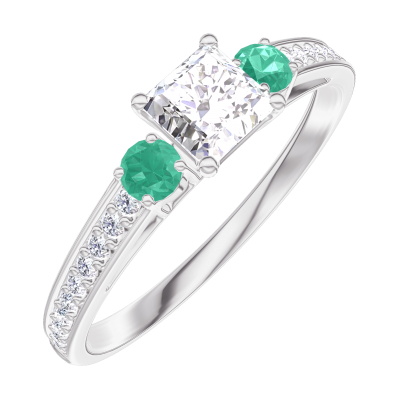 « L'ATELIER » NR. 180188Ring Witgoud 9 karaat - Laboratorium diamant Prinses 0.3 Karaat - Aanleunende edelstenen Smaragd - Setting Laboratorium diamant