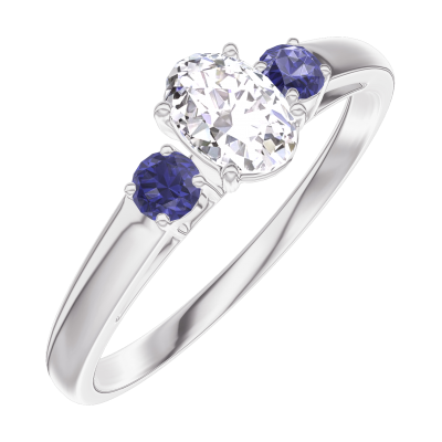 « L'ATELIER » Nº180364Ring Witgoud 9 karaat - Laboratorium diamant Ovaal 0.3 Karaat - Aanleunende edelstenen Blauwe saffier 5