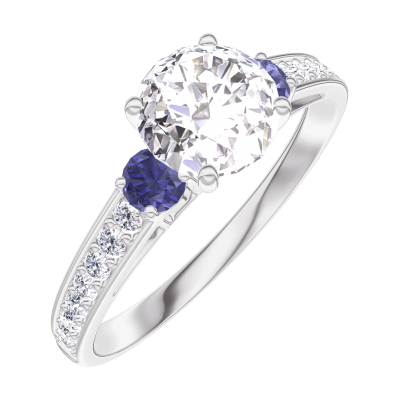 « L'ATELIER » NR. 184868Ring Witgoud 9 karaat - Laboratorium diamant rond 0.7 Karaat - Aanleunende edelstenen Blauwe saffier - Setting Laboratorium diamant 5