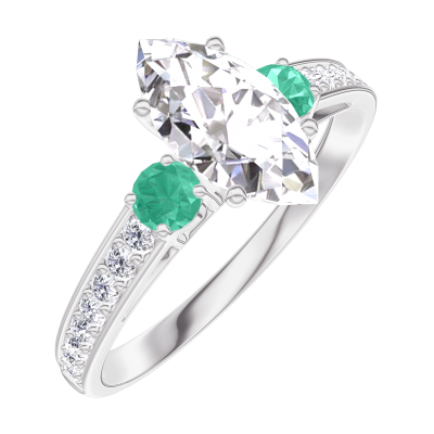 « L'ATELIER » Nº185388Ring Witgoud 9 karaat - Laboratorium diamant Markies 0.7 Karaat - Aanleunende edelstenen Smaragd - Setting Laboratorium diamant