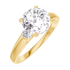 Ring Geelgoud 18 karaat - Laboratorium diamant rond 1 Karaat - Aanleunende edelstenen Laboratorium diamant