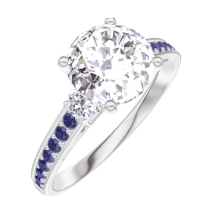Ring Witgoud 18 karaat - Laboratorium diamant rond 1 Karaat - Aanleunende edelstenen Laboratorium diamant - Setting Blauwe saffier