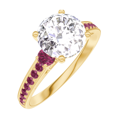 « L'ATELIER » Nº187249Ring Geelgoud 18 karaat - Laboratorium diamant rond 1 Karaat - Aanleunende edelstenen Robijn - Setting Robijn 4.9