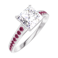 « L'ATELIER » NR. 187312Ring Witgoud 9 karaat - Laboratorium diamant Prinses 1 Karaat - Setting Robijn