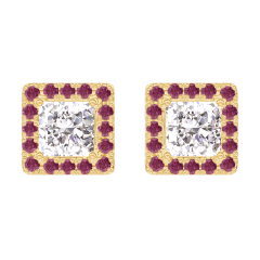 « L'ATELIER » NR. 200986Oorbellen Geelgoud 9 karaat - Diamant Prinses 0.3 Karaat (2 X) - Halo Robijn