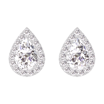 « L'ATELIER » Nº201031Oorbellen Witgoud 18 karaat - Diamant Peer 0.3 Karaat (2 X) - Halo Diamant