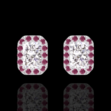 « L'ATELIER » Nº201100Oorbellen Witgoud 9 karaat - Laboratorium diamant Rechthoekig 0.3 Karaat (2 X) - Halo Robijn