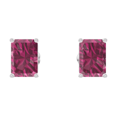 Oorbellen Witgoud 18 karaat - Robijn Rechthoekig 0.3 Karaat (2 X)