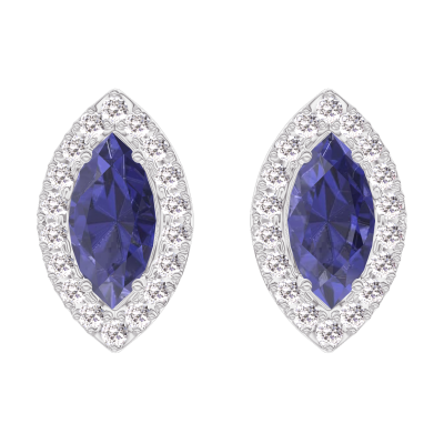 « L'ATELIER » Nº201336Oorbellen Witgoud 9 karaat - Blauwe saffier Markies 0.3 Karaat (2 X) - Halo Diamant
