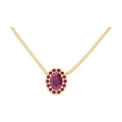 « L'ATELIER » NR. 201941Halsketting Geelgoud 18 karaat - Robijn Ovaal 0.3 Karaat - Halo Robijn - Ketting Venetiaans