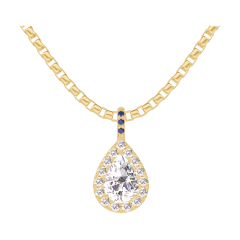 « L'ATELIER » NR. 204414Hanger Geelgoud 9 karaat - Laboratorium diamant Peer 0.3 Karaat - Halo Laboratorium diamant - Setting Blauwe saffier - Ketting Venetiaans