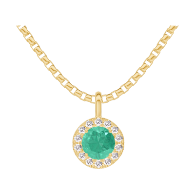 « L'ATELIER » Nº207089Hanger Geelgoud 18 karaat - Smaragd rond 0.3 Karaat - Halo Diamant - Ketting Venetiaans 4.3