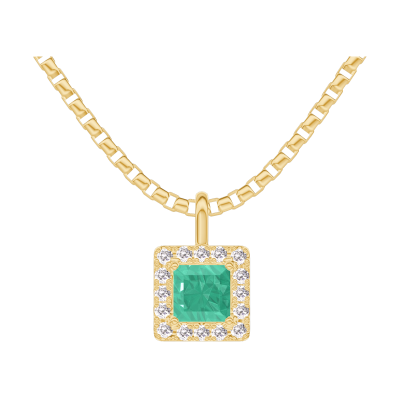 « L'ATELIER » Nº207282Hanger Geelgoud 9 karaat - Smaragd Prinses 0.3 Karaat - Halo Diamant - Ketting Venetiaans