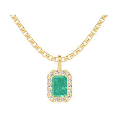« L'ATELIER » Nº207474Hanger Geelgoud 9 karaat - Smaragd Rechthoekig 0.3 Karaat - Halo Diamant - Ketting Venetiaans