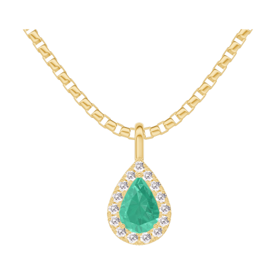 « L'ATELIER » Nº207857Hanger Geelgoud 18 karaat - Smaragd Peer 0.3 Karaat - Halo Diamant - Ketting Venetiaans