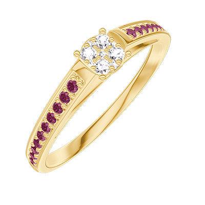 « L'ATELIER » Nº209010Ring Geelgoud 9 karaat - Cluster van natuurlijke diamantent rond gelijkwaardig 0.3 - Setting Robijn 4.8