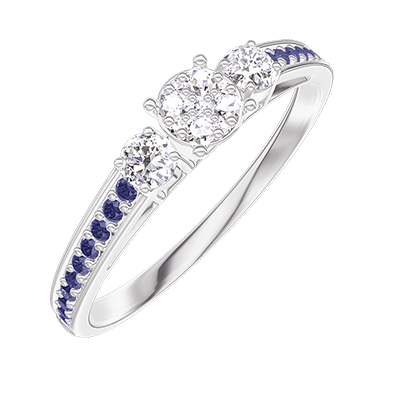 « L'ATELIER » NR. 209036Ring Witgoud 9 karaat - Cluster van natuurlijke diamantent rond gelijkwaardig 0.3 - Aanleunende edelstenen Diamant - Setting Blauwe saffier 4.8