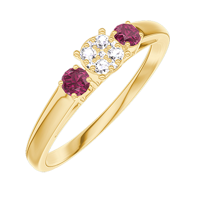 « L'ATELIER » Nº209041Ring Geelgoud 18 karaat - Cluster van natuurlijke diamantent rond gelijkwaardig 0.3 - Aanleunende edelstenen Robijn 4.8