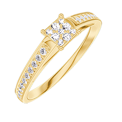 « L'ATELIER » NR. 209106Ring Geelgoud 9 karaat - Cluster van natuurlijke diamantent Prinses gelijkwaardig 0.3 - Setting Diamant