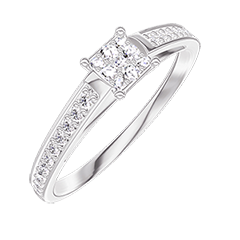 « L'ATELIER » NR. 209107Ring Witgoud 18 karaat - Cluster van natuurlijke diamantent Prinses gelijkwaardig 0.3 - Setting Diamant
