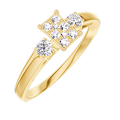 « L'ATELIER » NR. 209222Ring Geelgoud 9 karaat - Cluster van natuurlijke diamantent Rechthoekig gelijkwaardig 0.3 - Aanleunende edelstenen Diamant