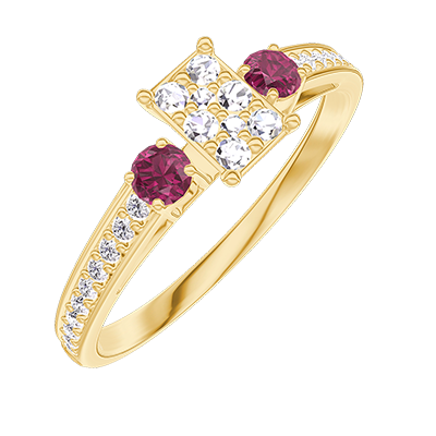 « L'ATELIER » Nº209246Ring Geelgoud 9 karaat - Cluster van natuurlijke diamantent Rechthoekig gelijkwaardig 0.3 - Aanleunende edelstenen Robijn - Setting Diamant