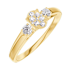Ring Geelgoud 18 karaat - Cluster van natuurlijke diamantent Ovaal gelijkwaardig 0.3 - Aanleunende edelstenen Diamant