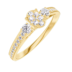 Ring Geelgoud 18 karaat - Cluster van natuurlijke diamantent Ovaal gelijkwaardig 0.3 - Aanleunende edelstenen Diamant - Setting Diamant