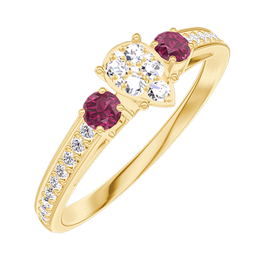 « L'ATELIER » Nº209446Ring Geelgoud 9 karaat - Cluster van natuurlijke diamantent Peer gelijkwaardig 0.3 - Aanleunende edelstenen Robijn - Setting Diamant