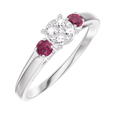 « L'ATELIER » NR. 209643Ring Witgoud 18 karaat - Cluster van natuurlijke diamantent rond gelijkwaardig 0.5 - Aanleunende edelstenen Robijn 4.9