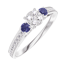 « L'ATELIER » NR. 209668Ring Witgoud 9 karaat - Cluster van natuurlijke diamantent rond gelijkwaardig 0.5 - Aanleunende edelstenen Blauwe saffier - Setting Diamant 4.8