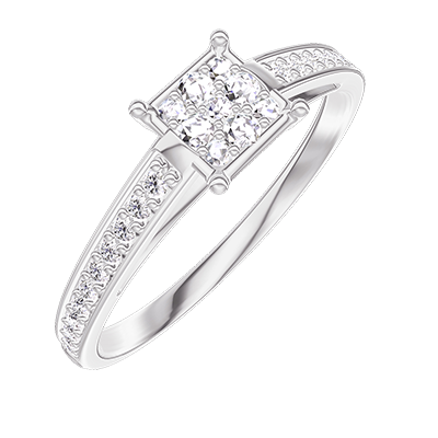 « L'ATELIER » Nº209708Ring Witgoud 9 karaat - Cluster van natuurlijke diamantent Prinses gelijkwaardig 0.5 - Setting Diamant