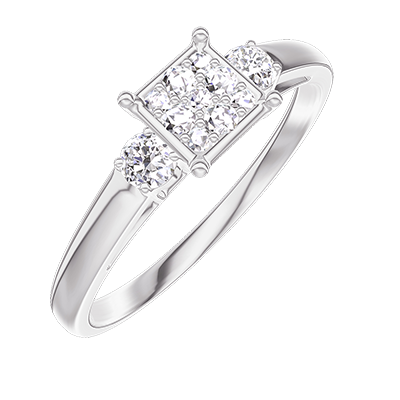 « L'ATELIER » NR. 209724Ring Witgoud 9 karaat - Cluster van natuurlijke diamantent Prinses gelijkwaardig 0.5 - Aanleunende edelstenen Diamant