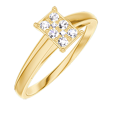 « L'ATELIER » NR. 209801Ring Geelgoud 18 karaat - Cluster van natuurlijke diamantent Rechthoekig gelijkwaardig 0.5