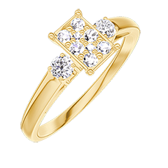 « L'ATELIER » NR. 209822Ring Geelgoud 9 karaat - Cluster van natuurlijke diamantent Rechthoekig gelijkwaardig 0.5 - Aanleunende edelstenen Diamant