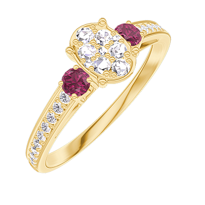 « L'ATELIER » Nº209946Ring Geelgoud 9 karaat - Cluster van natuurlijke diamantent Ovaal gelijkwaardig 0.5 - Aanleunende edelstenen Robijn - Setting Diamant