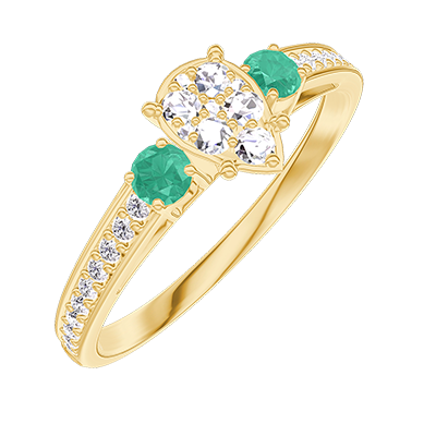 « L'ATELIER » Nº210086Ring Geelgoud 9 karaat - Cluster van natuurlijke diamantent Peer gelijkwaardig 0.5 - Aanleunende edelstenen Smaragd - Setting Diamant