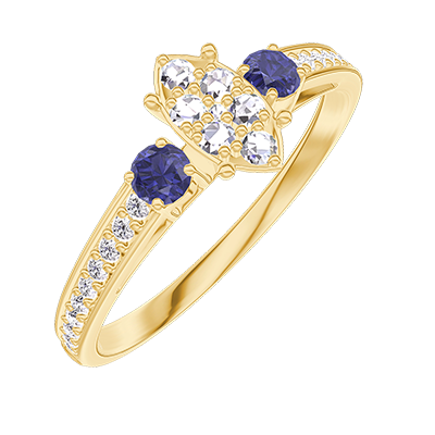 « L'ATELIER » Nº210166Ring Geelgoud 9 karaat - Cluster van natuurlijke diamantent Markies gelijkwaardig 0.5 - Aanleunende edelstenen Blauwe saffier - Setting Diamant