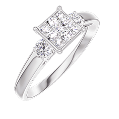 « L'ATELIER » NR. 210324Ring Witgoud 9 karaat - Cluster van natuurlijke diamantent Prinses gelijkwaardig 0.7 - Aanleunende edelstenen Diamant