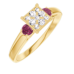 « L'ATELIER » NR. 210342Ring Geelgoud 9 karaat - Cluster van natuurlijke diamantent Prinses gelijkwaardig 0.7 - Aanleunende edelstenen Robijn
