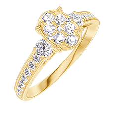 Ring Geelgoud 18 karaat - Cluster van natuurlijke diamantent Ovaal gelijkwaardig 0.7 - Aanleunende edelstenen Diamant - Setting Diamant