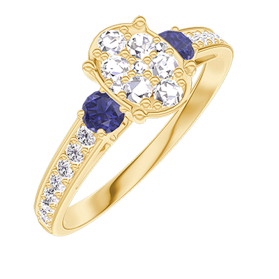 « L'ATELIER » Nº210566Ring Geelgoud 9 karaat - Cluster van natuurlijke diamantent Ovaal gelijkwaardig 0.7 - Aanleunende edelstenen Blauwe saffier - Setting Diamant